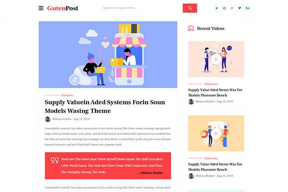 GutenPost bold and exciting design is the perfect choice for bloggers that want to make a big impact. With a choice of post layouts and styles, seven sidebars, support for popular third party widgets, numerous theme options and the powerful editing features of Gutenberg