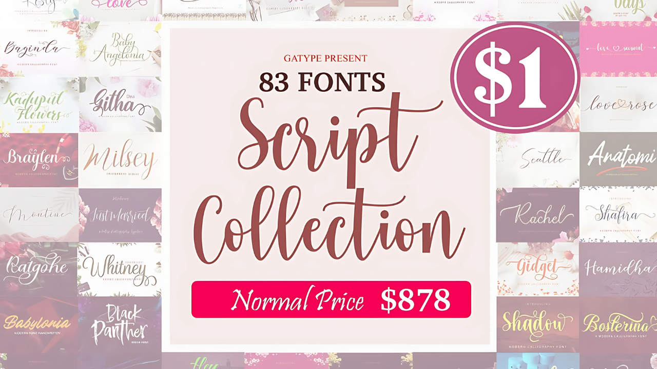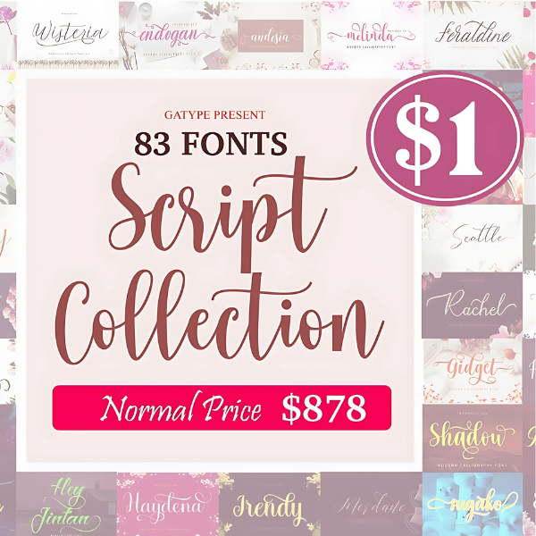 The Script Collection Bundle is packed with 83 gorgeous fonts – including multiple styles to fit your every crafting need. Purchased separately these fonts are worth over $743, but you can now get them all for the amazing price of just $1!