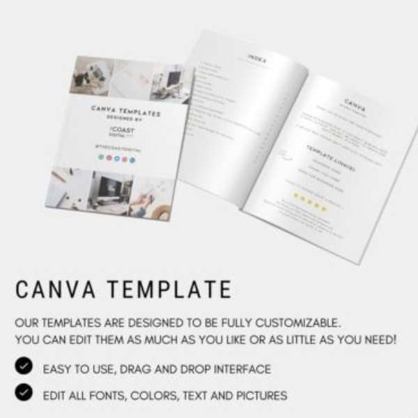 Editable with Canva, this mock-up template is extremely easy to use and can be edited and downloaded an unlimited number of times.
